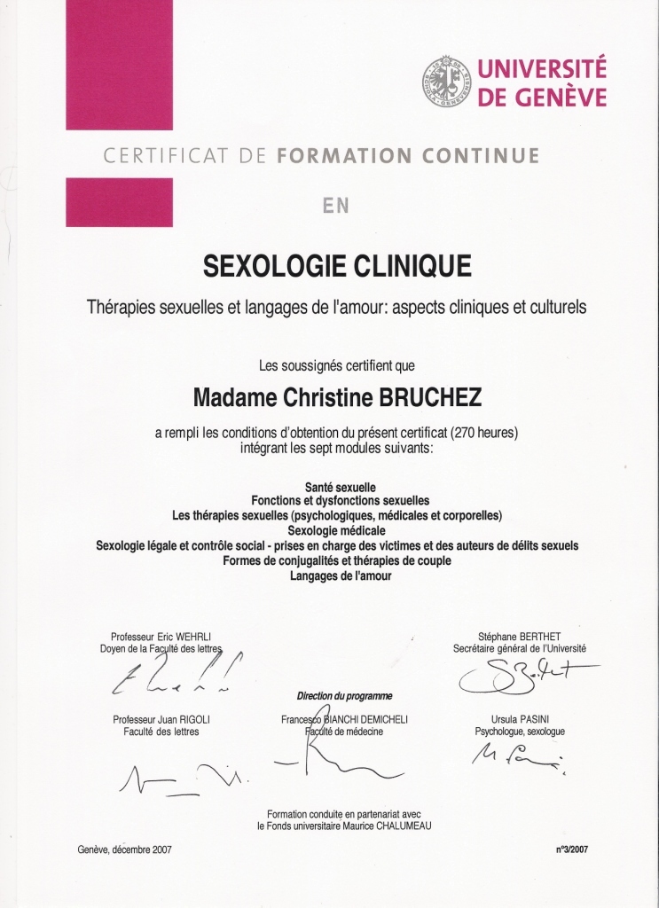 - 2005-2007 Formation et CAS en Sexologie clinique (UniGenève)